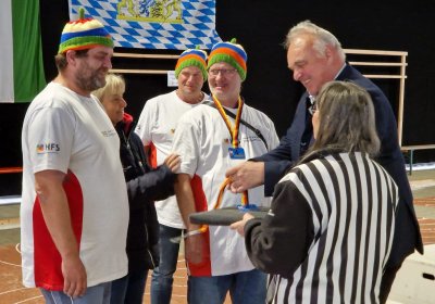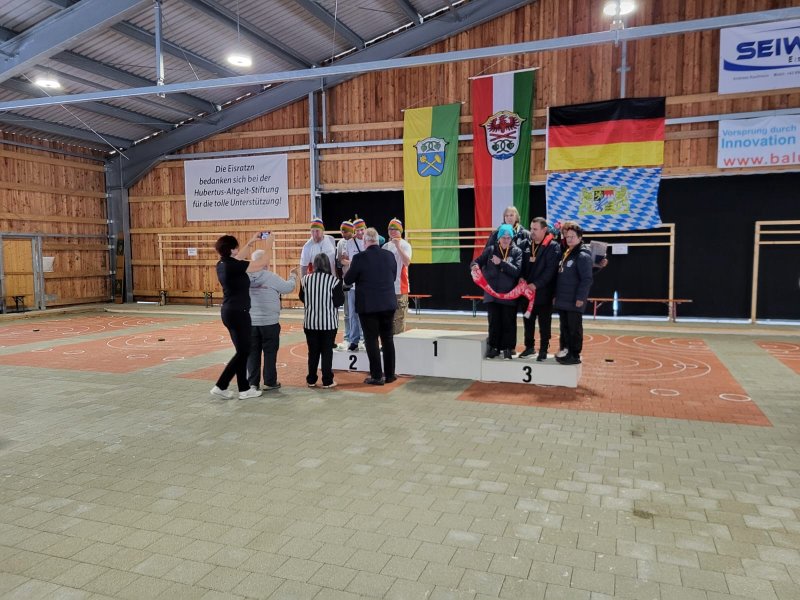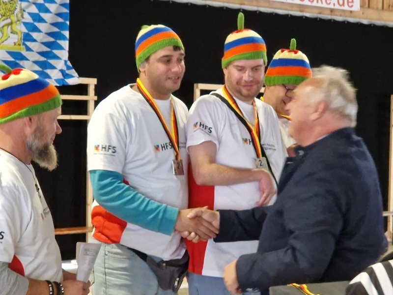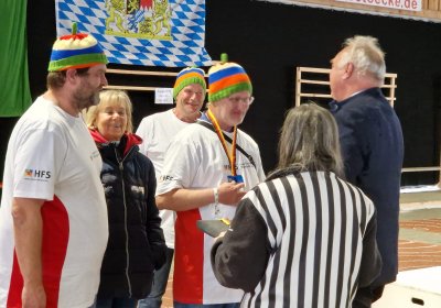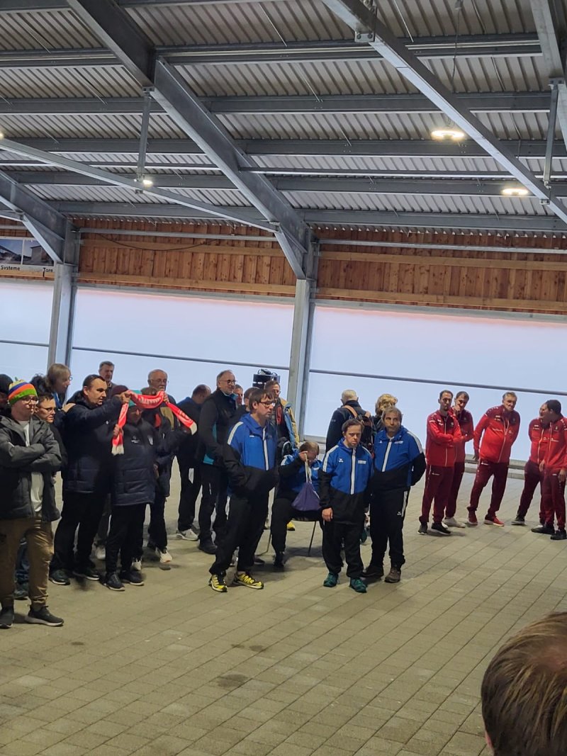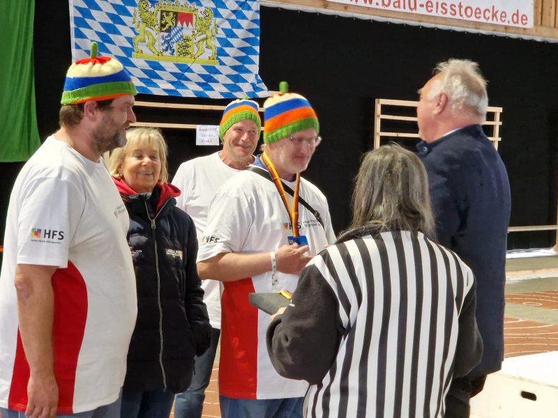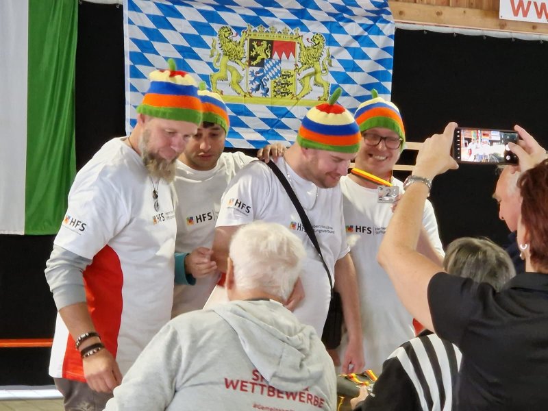 Zum ersten Mal nahmen zwei Mannschaften des HFS an den Special Olympics teil. Im Mannschaftsspiel „Duo“ belegten Waldemar Freiberger und Peter Fugmann den vierten Platz. Im Wettbewerb „Unified“ wurden Florian Lesch, Jan Verch, Dennis Wedemeyer und Stefan „Paule“ Lorenzen, als Unified Partner, Vizemeister. Im Gegensatz zu anderen teilnehmenden Teams, die schon jahrelang den Stocksport betreiben, sind die Jungs vom HFS als Neulinge anzusehen. Umso beachtlicher war das Auftreten in der Schaftlacher Stocksporthalle. Doch nicht nur die Leistungen fanden Beachtung, sondern auch das faire Auftreten und nicht zuletzt die Strickmützen, bekannt aus der Heider Winterwelt, die eine langjährige Kollegin bereits vor Jahren strickte und uneigennützig an die damalige Mannschaft abtrat. Der deutsche Stocksportmeister von 2023, Stefan Quercher, Mitorganisator der Wettkämpfe, zeigte sich derart beeindruckt, dass er als Abschiedsgeschenk eine Mütze geschenkt bekam und diese, als Andenken an die Jungs aus dem hohen Norden, im Vereinlokal aufhängen will. An den Wettbewerben nahmen Mannschaften aus Luxemburg, Österreich und Deutschland teil, aber keines hatte eine vergleichbar lange Anreise wie das Team HFS. Wir starteten am Freitag um 6 Uhr morgens und erreichten die Jugendherberge in Lenggries nach 12 Stunden Fahrt im Kleinbus. Nach Ankunft checkten wir schnell ein und verließen umgehend wieder die Herberge, um noch die Möglichkeit eines freien Trainings in der Stocksporthalle zu nutzen. Die Mannschaft, die das Jahr über in der Stocksport-Arena Süderholm trainiert, musste sofort feststellen, dass es auch schnellere Bahnen gibt als gewohnt. Erstaunlich, wie schnell man sich darauf einstellen konnte. Nach dem Training hatten wir die Möglichkeit in einem urigen bayrischen Gasthof zum Abend zu essen. Wir nutzten das und hatten so nach der langen Reise einen gemütlichen Ausklang des Tages. An unserer Seite im Gasthof, aber auch in der Jugendherberge und im Wettkampf waren Wolf Prager, Vorsitzender des SH-Stocksport-Verbandes, und seine Frau Jutta, die uns mit Rat und Tat zur Seite standen. Der zweite Tag begann um 7:30 Uhr mit einem guten Frühstück in der Herberge und dann ging es auch bald zu den Wettkämpen in die Stocksporthalle. Nach Beendigung der Meisterschaften gab es ein warmes Essen und danach fand eine sehr stimmungsvolle Siegerehrung statt, die sowohl die Teilnehmer als auch die Betreuer und Zuschauer begeisterte. Die Teams bekamen sehr schöne Medaillen, die sich nicht von denen der „Profis“ unterscheiden und dazu Urkunden. Den Abend vor unserer Abreise verbrachten wir im Freizeitraum der Jugendherberge und vertrieben uns die Zeit bei Tischtennis und Tischfußball. Am Sonntag starteten wir früh und waren nach zehn Stunden Fahrt zurück in Heide. Fazit: Es war ein besonderes und auch ein besonders schönes Erlebnis für alle. Wir waren ein Team, wie man es sich bestenfalls vorstellt. Ein schönes Gemeinschaftsgefühl und nebenbei noch der sportliche Erfolg.