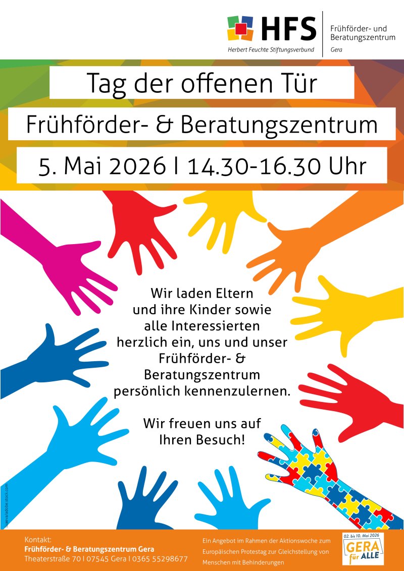 Wie laden Eltern und ihre Kinder sowie alle Interessierten herzlich ein, uns und unser Frühförder- und Beratungszentrum Gera persönlich kennenzulernen.