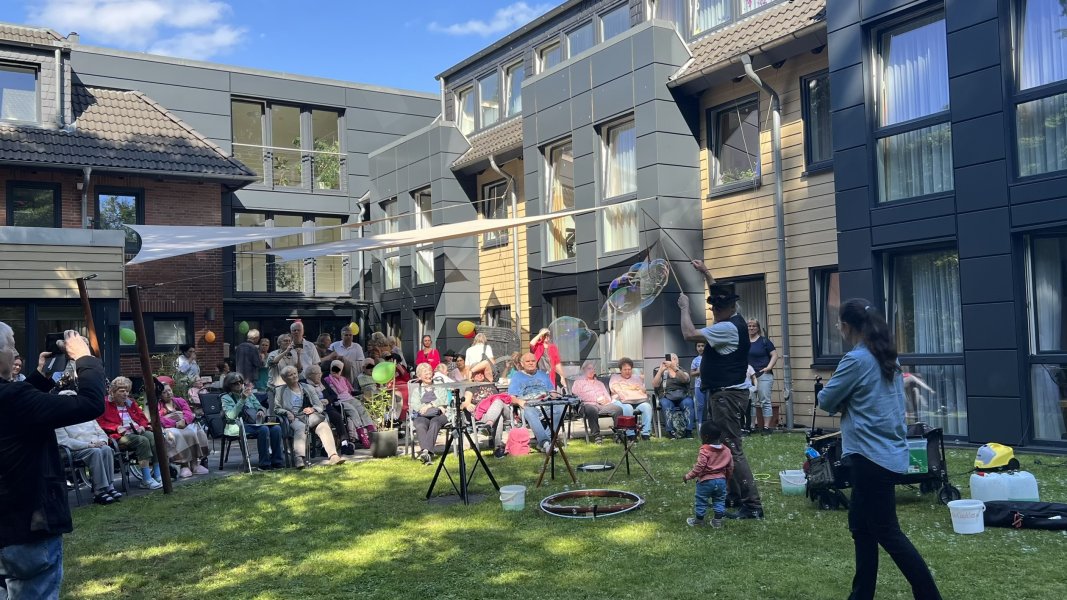 Unser Altenheim befindet sich in attraktiver Lage im grünen Stadtteil Volksdorf im Nordosten Hamburgs. Es ist von einem schönen Garten mit großzügiger Rasenfläche umgeben. Im Ortskern befinden sich eine beschauliche Fußgängerzone und die Einkaufspassage Weiße Rose. Gute Verkehrsanbindungen in die Hamburger Innenstadt bestehen durch U-Bahn und Linienbusse.