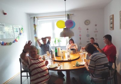 - Betreuungsangebote: In der Woche gehen die Bewohner*innen Ihrer Beschäftigung in einer Tagesförderstätte, einer Werkstatt oder einem Außenrbeitsplatz nach. Nach Feierabend, an den Wochenenden und in den Ferien findet ein abwechslungsreiches Betreuungsangebot mit gemeinsamen Aktivitäten durch die Gruppen-Betreuer*innen statt.