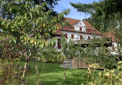 - Zimmer: 10 Doppelzimmer und 4 Einzelzimmer, die individuell gestaltet werden können. Allen Zimmern ist ein Bad zugeordnet.